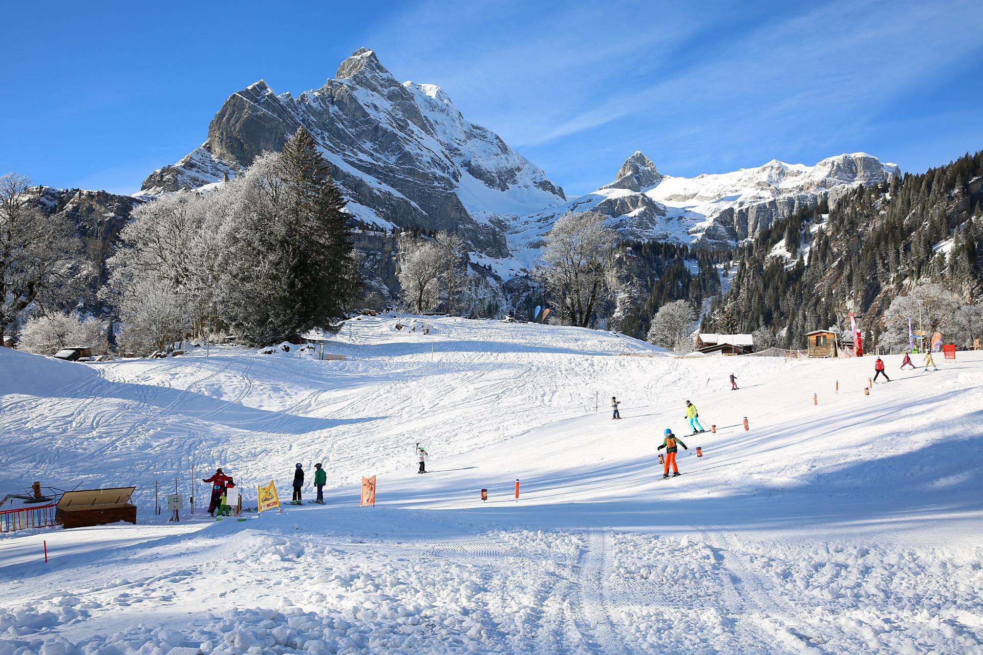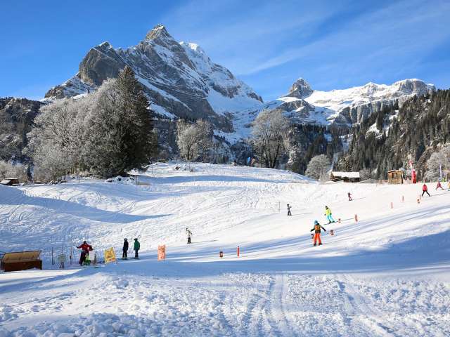 Das Kinderland Hüttenberg ist während dem Abendskifahren beleuchtet. Verpflegung gibt es beim Snowligrill und etwas gegen den Durst im Fuchsgadä Braunwald.