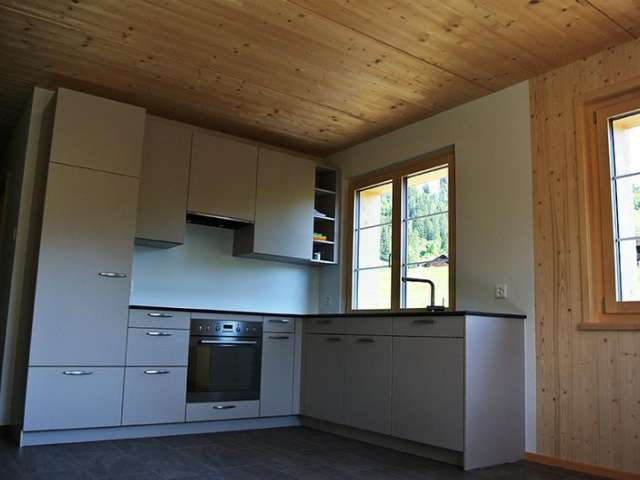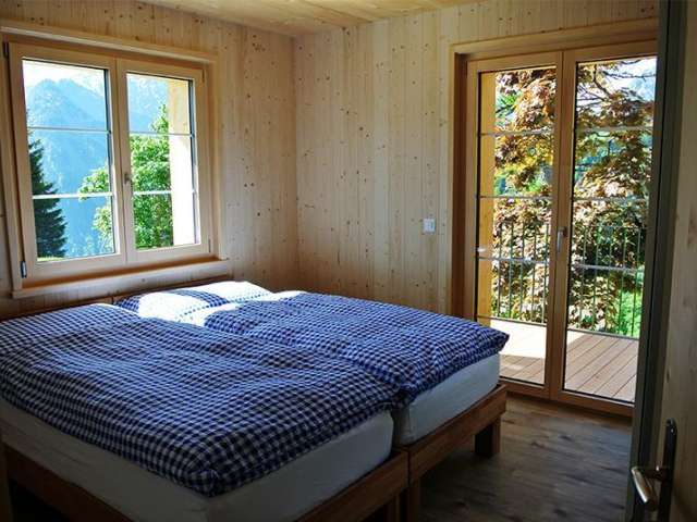 Die kleinere Wohnung hat 1.5 Zimmer und ist mit einer kleinen Wohnküche ausgestattet. Die moderne Küchenzeile hat ein Kochfeld, Backofen, einen kleinen Geschirrspüler sowie Kühlschrank mit Gefrierfach. Nebenan befindet sich das Schlafzimmer mit einem schönen Ausblick in die Glarner Bergwelt. Vom Zimmer aus hat man einen direkten Zugang zum Balkon. Zur Wohnung gehört ein Badezimmer mit WC, Dusche und Waschbecken. Die gesamte Wohnung ist ausgestattet mit Bodenheizung und die Gäste haben kostenlosen Zugang zum WLAN.