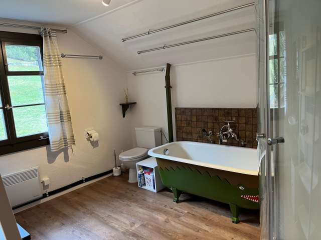 Das 5.5 Zimmer-Chalet steht an sonniger, ruhiger Lage mit einem wunderbaren Blick auf die Bergwelt. Geniesst du vom Balkon oder von einem der lauschigen Plätzchen rund ums Haus entspannte & erholsame Stunden.