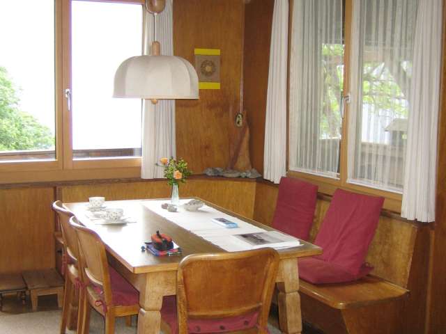 In 500m Entfernung befindet sich die Gondelbahn. Der grosse Holzbalkon, die ruhige Lage und die traumhafte Panoramaaussicht zeichnen dieses Chalet aus. Das Haus bietet mit seinen 3 Schlafzimmer Platz für bis zu 5 Personen und verfügt ausserdem über einen Kachelofen. Die Küche ist gut eingerichtet und das Badezimmer verfügt über Dusche und WC.