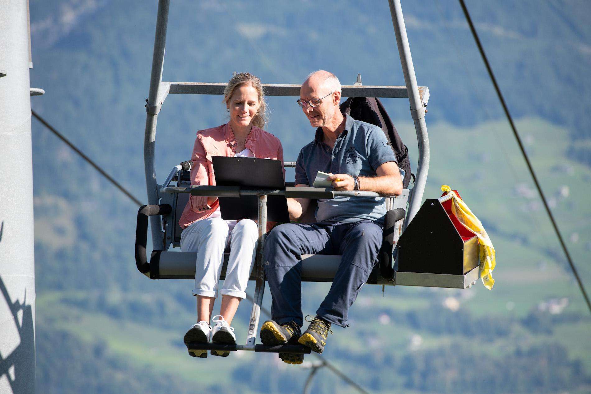 Auf dem Zweiersessellift werden während der Fahrt in Zweierteams Ideen zu einem bestimmten Thema gesucht. Auf dem Berg werden diese Ideen für die weitere Bearbeitung im Team ausgewertet.