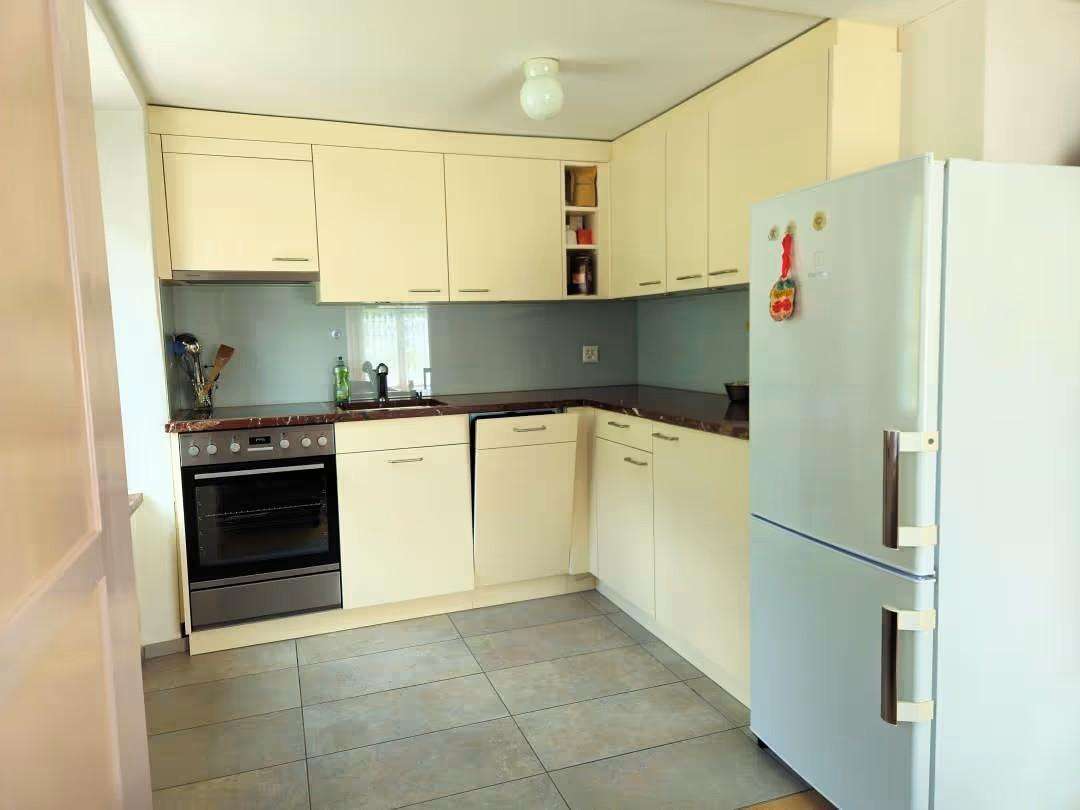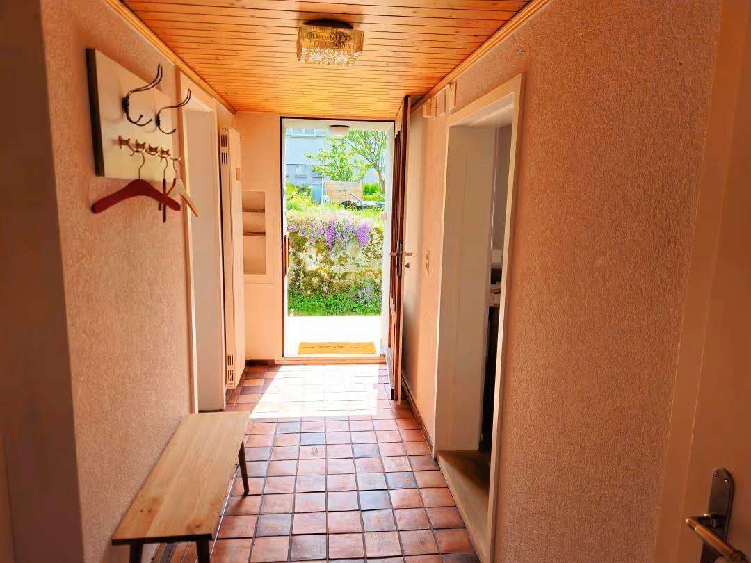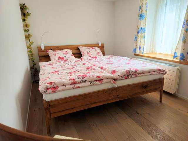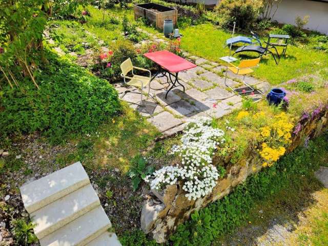 Komfortable Ferienwohnung (2 Zi, Dusche/WC, moderne Küche) mit privatem Garten, S-Bahn-Anschluss, in 90 Min. nach Zürich.