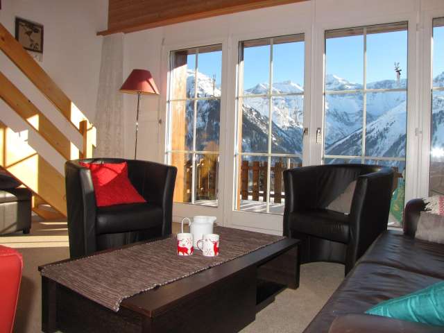 Die Maisonette-Ferienwohnung im Chalet Sunnebüchel liegt in zentraler und ruhiger Lage mit traumhafter Aussicht.