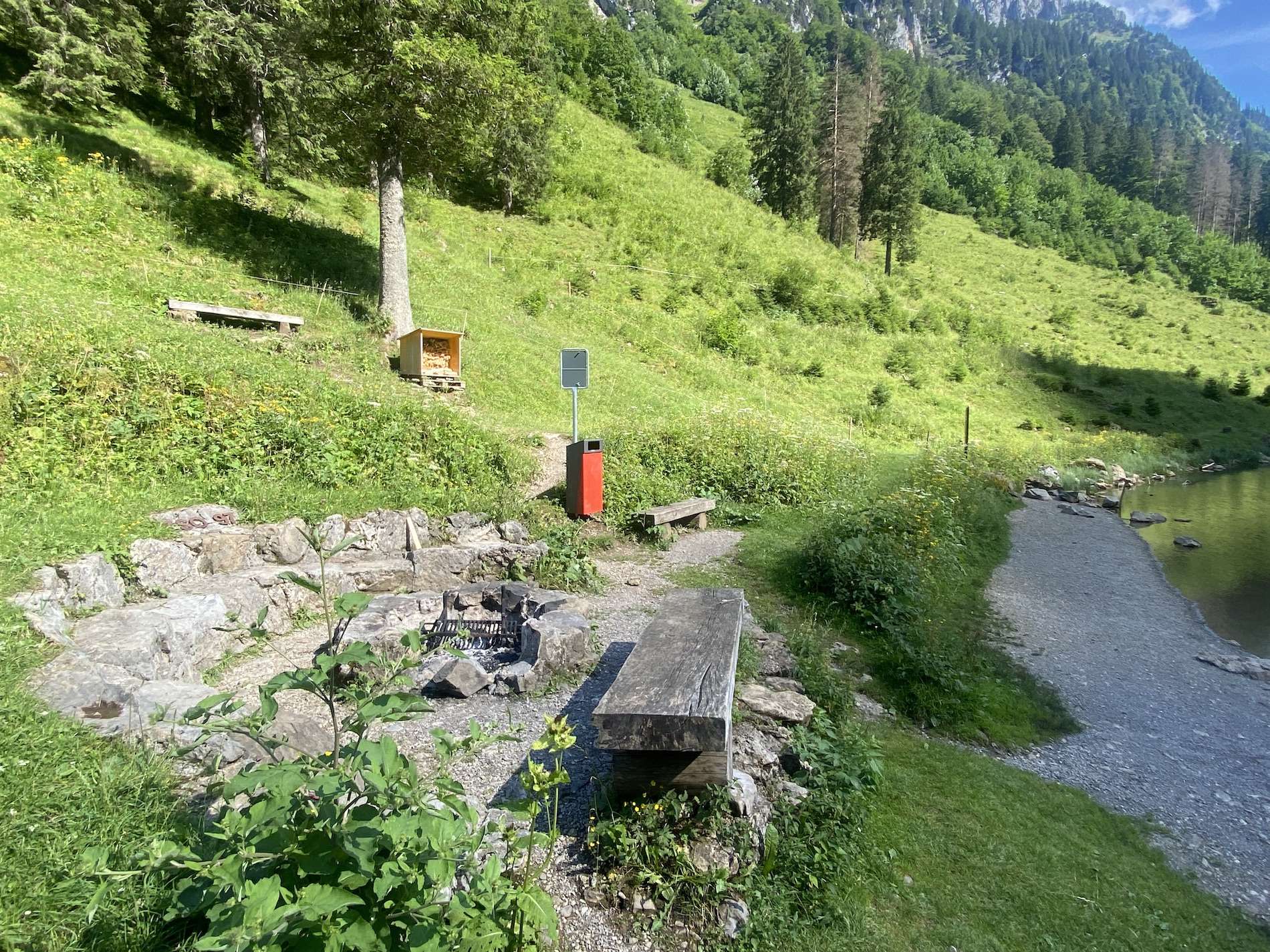 Am wunderschönen Talalpsee gibt es gleich zwei Schweizer-Familienfeuerstellen.