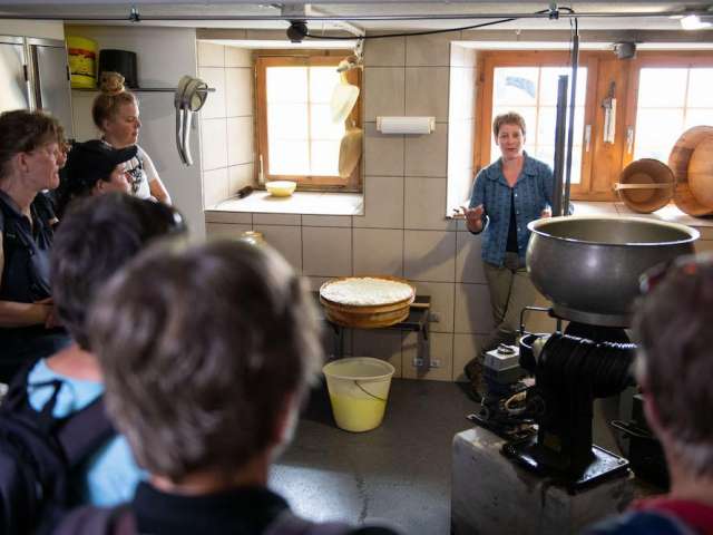Wenn die Alpenluft und der Kräuterduft in der Nase mitschwingen, dann isst man mit grösster Wahrscheinlichkeit ein Gericht mit Glarner Alpziger, dem noch einzigen Alpziger von Myrtha und Siegfried Fischli-Good. Die Bergbauernfamilie zigert auf der Alp Obersee-Rauti, Sente Änziunen, und verarbeitet den frischen Rohziger weiter, reichert ihn mit Salz und Zigerklee an – und das Abpacken ist dann reine Familiensache – alle helfen mit. Die frische Kuh-/Alpmilch wird direkt nach dem Melken zentrifugiert, beziehungsweise das Fett wird von der Milch getrennt. Die reine Magermilch wird im Kupferkessi mit Holzfeuerung auf 90 Grad erhitzt. Langsam wird Etscher eingerührt; die Milch scheidet danach in Ziger, der das Eiweiss enthält, und in Schotte. In Holzsilos lagert der frische Ziger zugedeckt für mehrere Wochen. Bis die letzten Verarbeitungsschritte warten. Geführte Ziger-Touren von Ueli Schlittler für Gruppen ab 4 Personen.