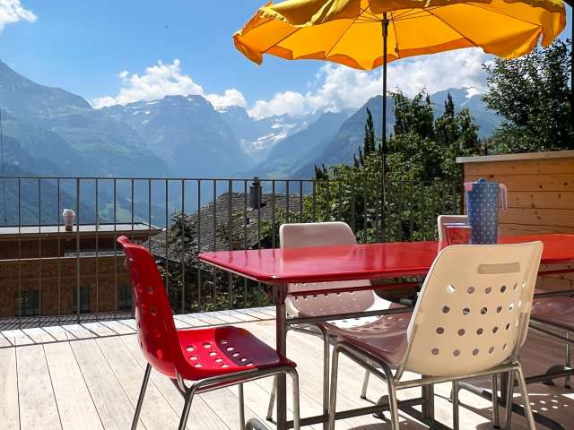Das charmante Haus Planura liegt im alten Dorfteil Braunwald, mit atemberaubender Aussicht auf die Glarner Bergwelt.