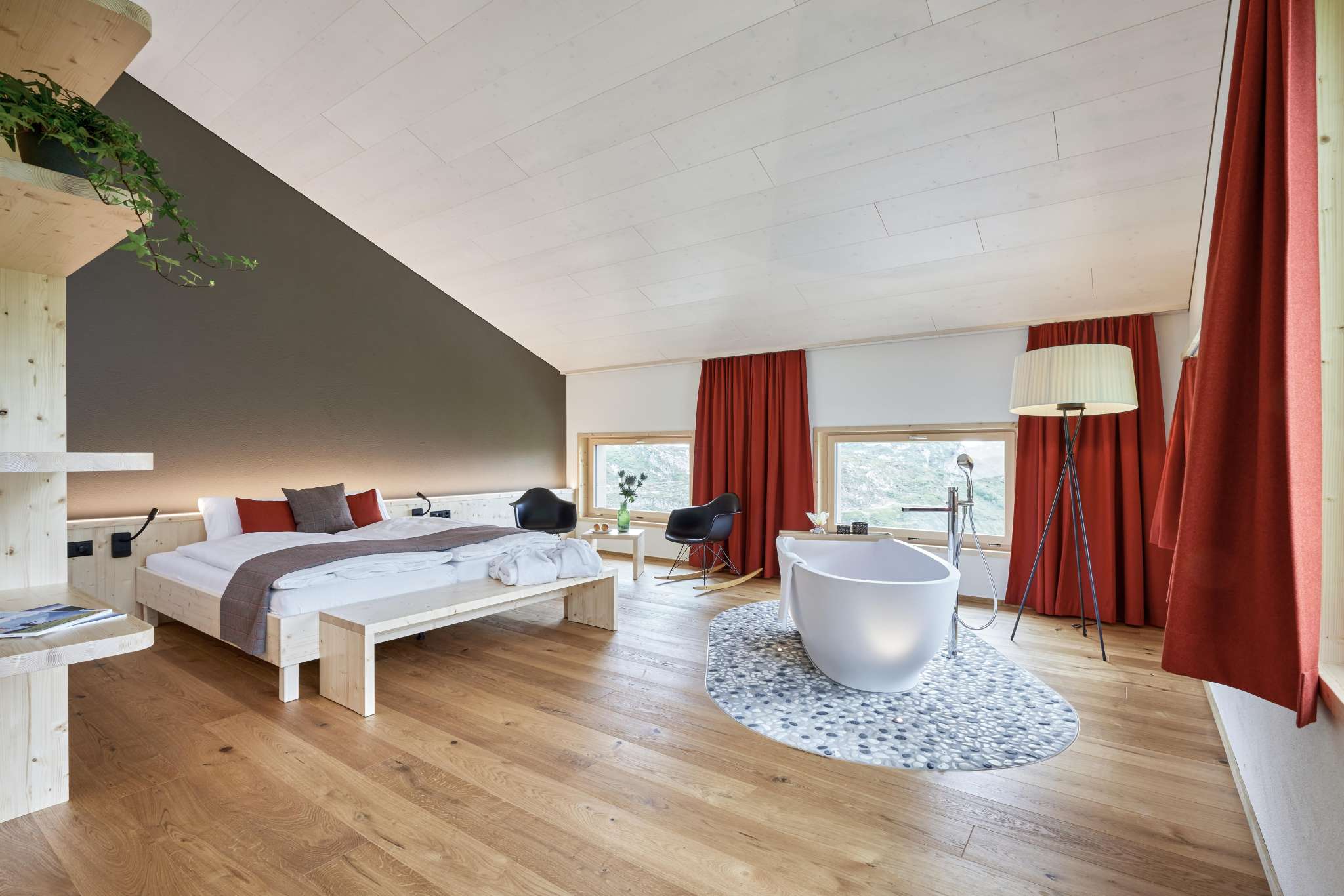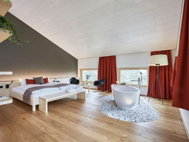 Stilvoll eingerichtete Zimmern im Alpine-Style - einfach heimelig. Hier soll es an nichts fehlen. Stärke dich bei einem reichhaltigen, hochwertigen Frühstücksbuffet, bevor es hinausgeht in die wunderbare Bergwelt.