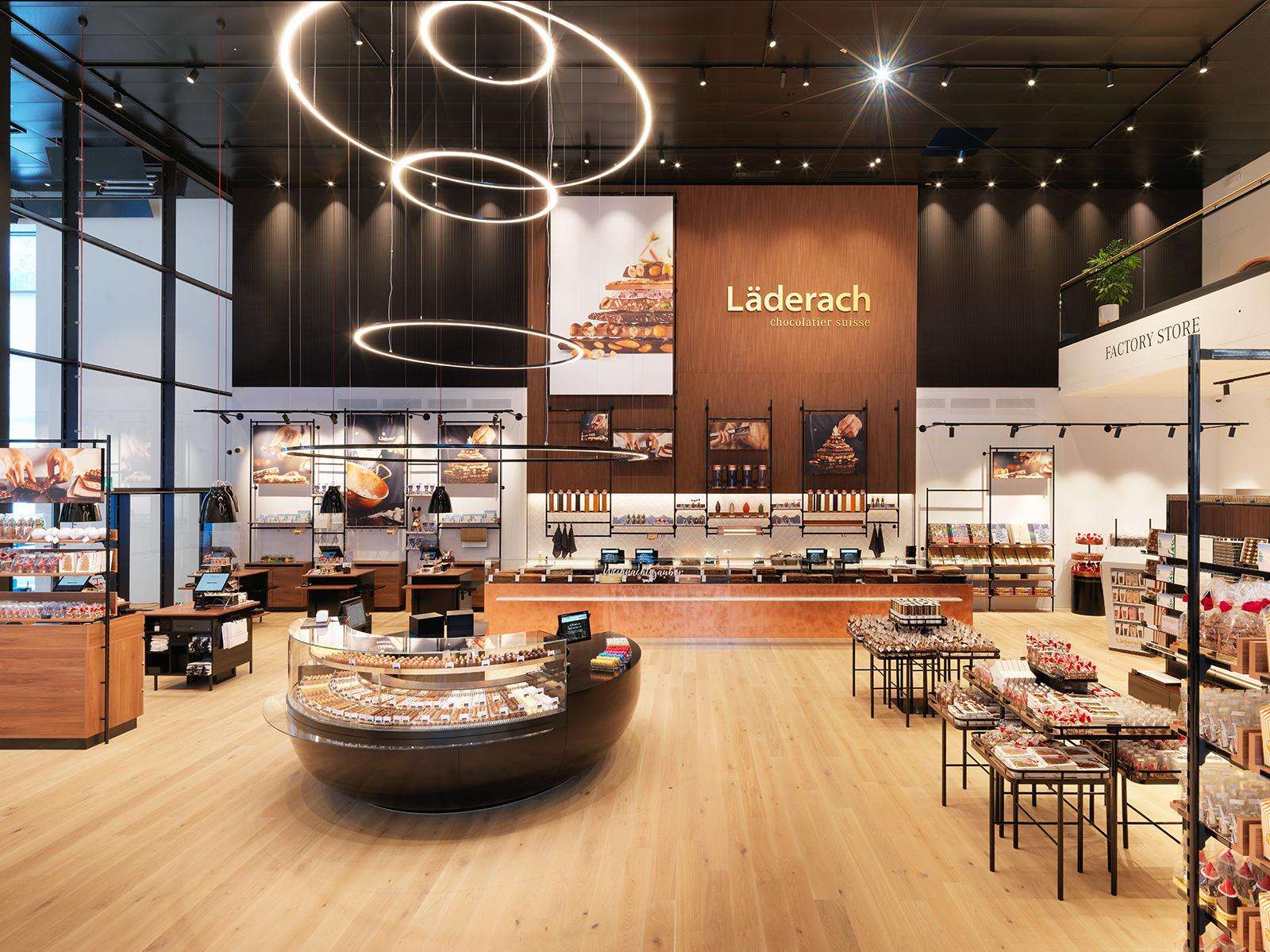 Neben dem Rundgang gibt es im House of Läderach einen Factory Store, der eine besondere Überraschung parat hält: die längste FrischSchoggi-Theke der Welt mit über 20 köstlichen Sorten. Probieren ist hier ausdrücklich erwünscht. Die grossen Platten werden täglich in der Schweiz produziert und innerhalb weniger Tage weltweit in die Chocolaterien geliefert und dort an der Theke individuell auf Kundenwunsch in Stücke gebrochen. Darüber hinaus können Schokoladenliebhaber das Läderach Sortiment vor Ort in seiner grossen Vielfalt samt Pralinés, Truffes, luftigen Mini Mousses und weiteren süssen Verführungen entdecken und zu attraktiven Preisen erwerben. Ein besonderes Highlight ist zudem das Walk-in Atelier innerhalb des Factory Stores, welches Gästen ermöglicht, eine individuelle Schokoladen-Tafel samt persönlicher Dekoration zu gestalten.