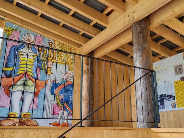 Die Infrastruktur des Info-Pavillons dient einerseits als Informations-Punkt und stellt mit dem Kinderspielplatz und den Picknick-Tischen einen idealen Aufenthaltsort dar.