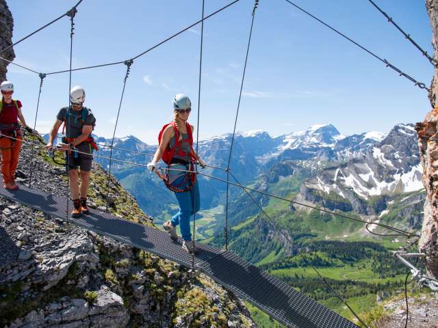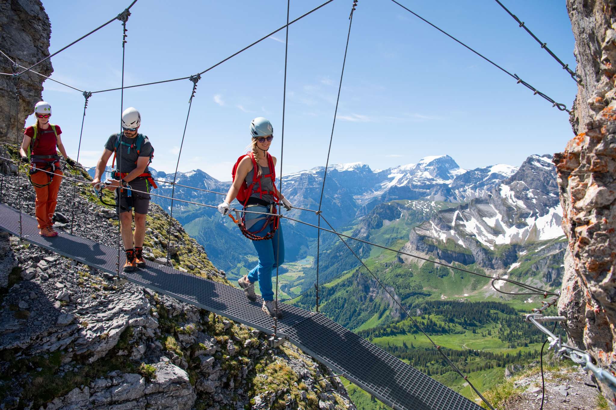 Kurzfristige Reservationen: +41 79 612 81 83 (Walti) per WhatsApp, Signal, Telegram, Threema, Handy (kann bei grossem Andrang nicht immer bedient werden). Name & Vorname angeben und wie viele Klettersteigset, Helme, Gurte oder Gesamtausrüstungen es braucht.
