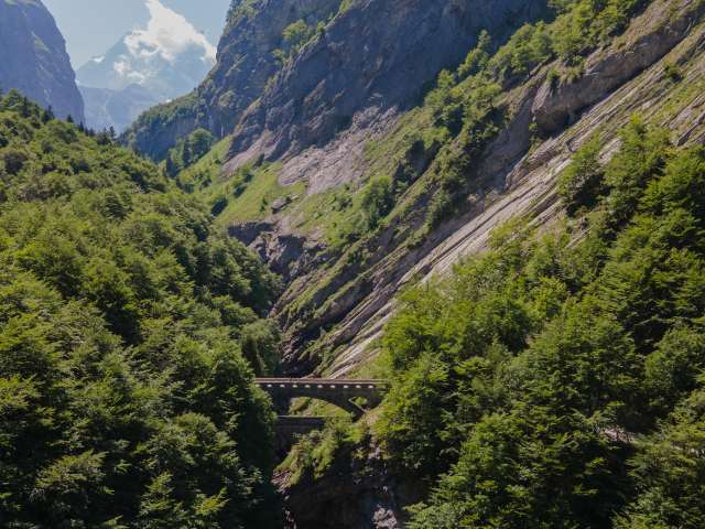 Wo die junge Linth durch enge Schluchten schäumt, zeigt sich die Natur noch wild und unberührt. Mit der eindrucksvollen Pantenbrugg als einzigen Übergang ist die Linthschlucht ein ursprünglich gebliebenes Naturmonument.