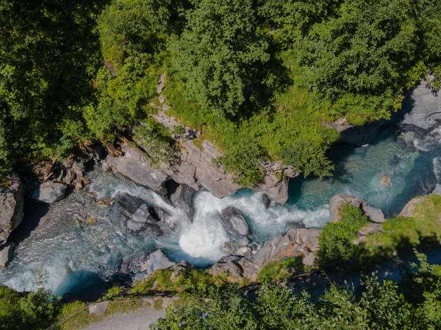 Hinweis: Es ist gefährlich, sich im Flussbett aufzuhalten! Die Wasserkraftanlagen können jederzeit ein plötzliches Hochwasser verursachen, auch bei schönem Wetter!