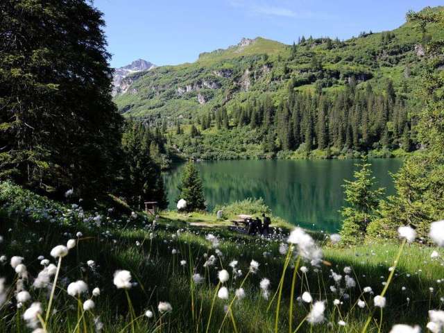 Der idyllische Stausee Garichti - von den Glarnern auch Mettmensee genannt - liegt wunderschön eingebettet im Freiberg Kärpf auf 1622 Metern über Meer