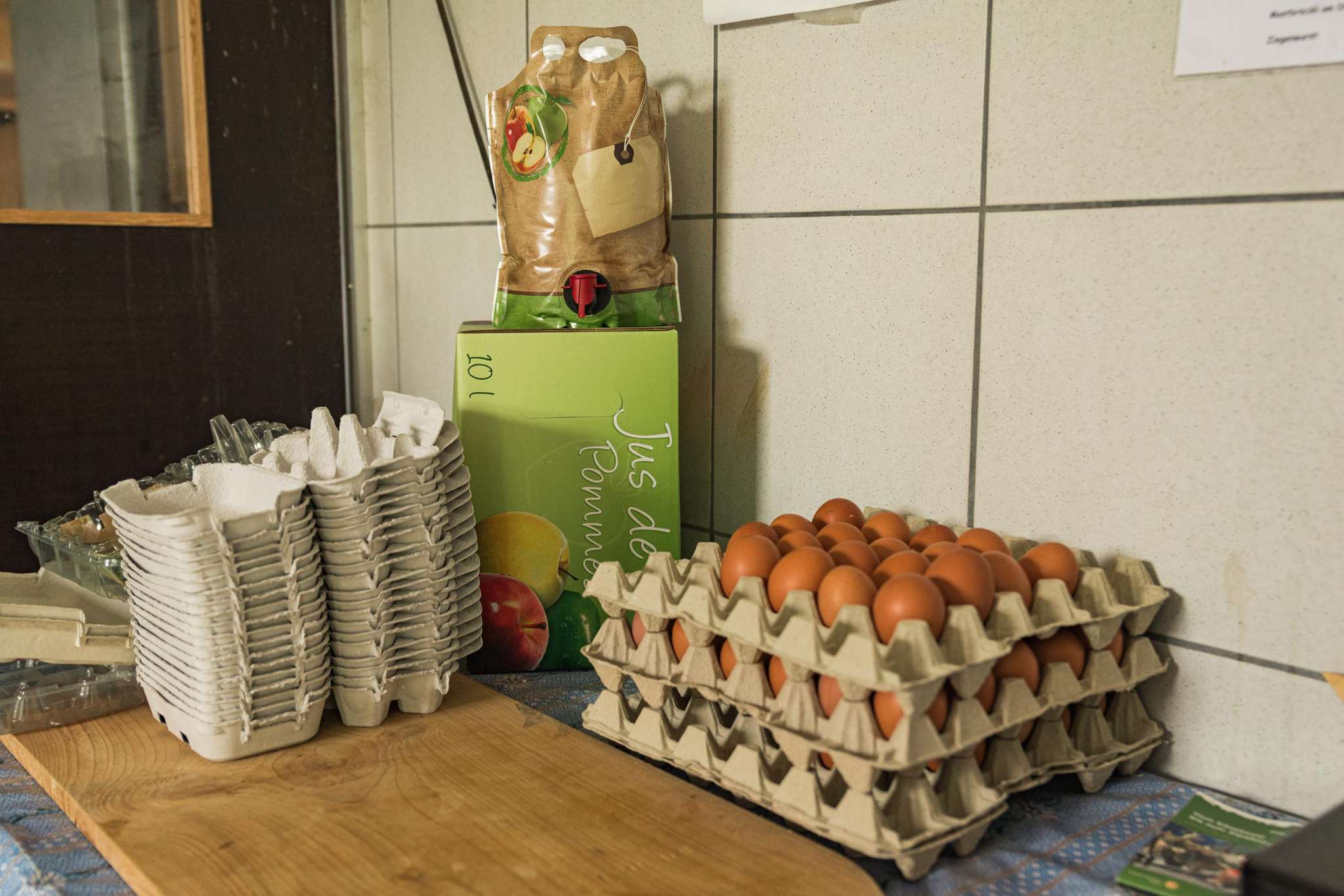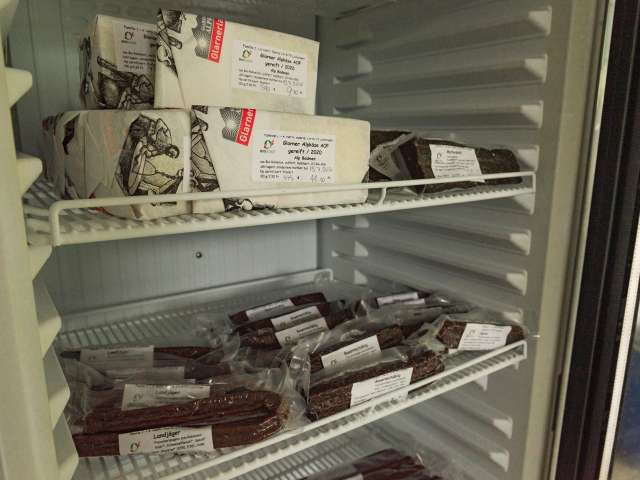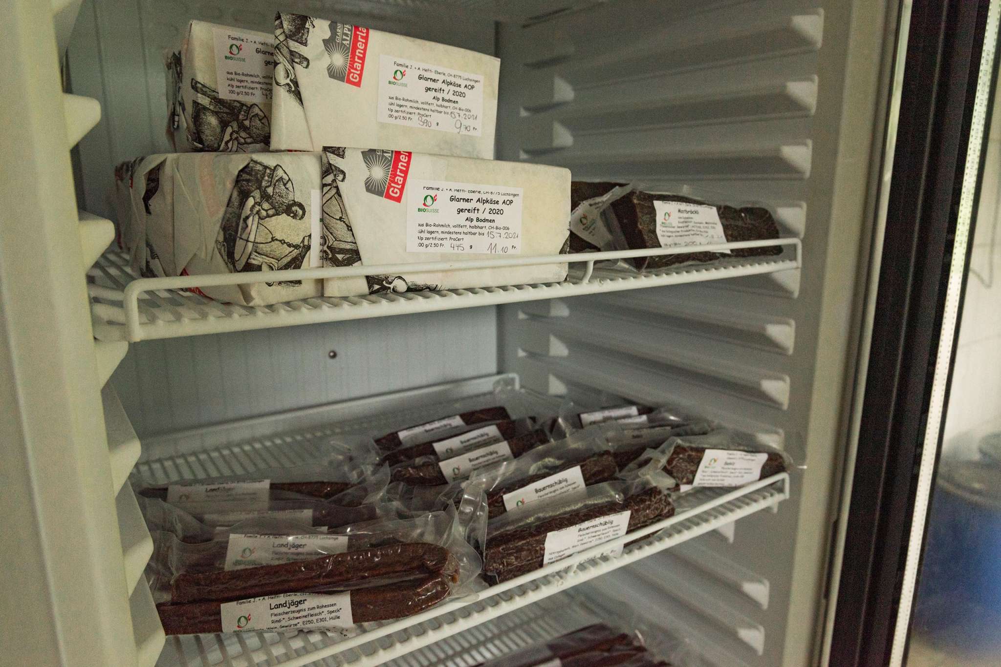 Im Sommer sind die Milchkühe​,​ Rinder​,​ Kälber und Ziegen auf der stattlichen Alp​ Bodmen-Saasberg,​ wo Familie Hefti feinsten Glarner Alpkäse herstellt​,​ der auch im Hoflädeli zu kaufen ist. Die Hühner jedoch bleiben zu Hause und sind die direkten Nachbarn im Camp.