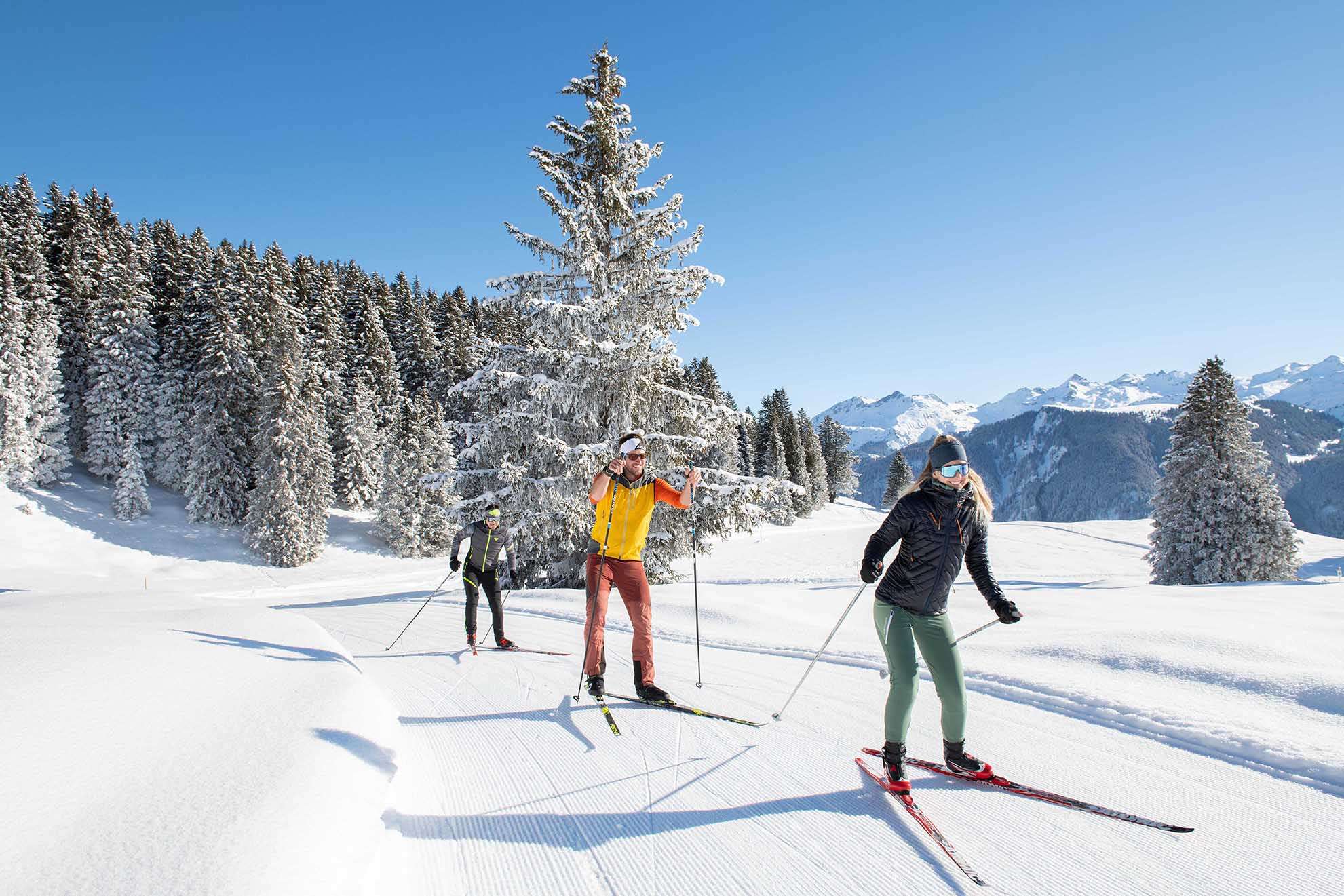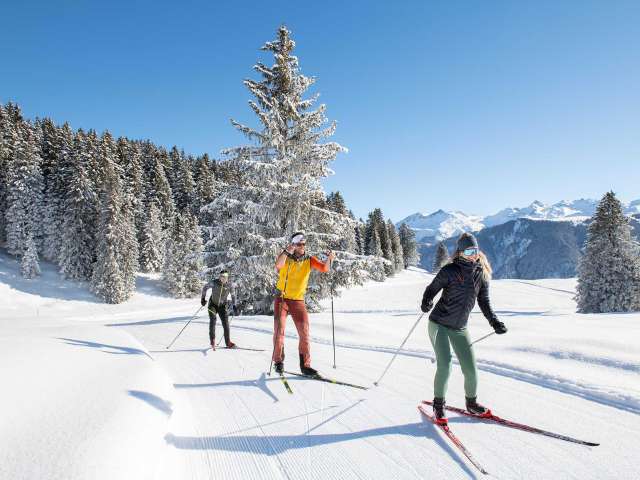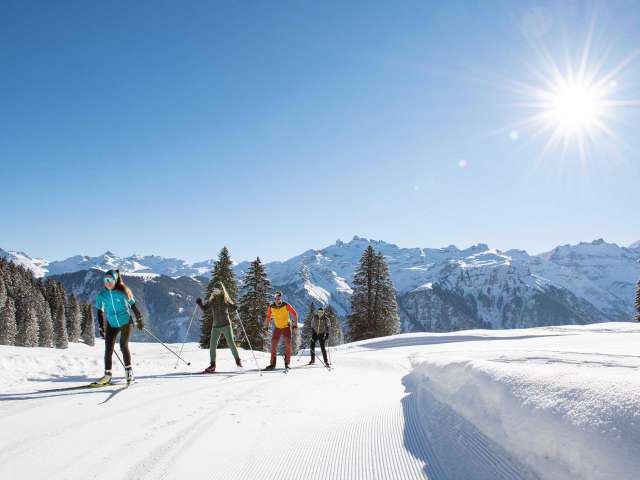 Über Wiesen und durch verschneite Wälder mit einer Höhendifferenz von 200 Metern und einem einmaligem Blick auf das fantastische Glarner Bergpanorama. Nach einem wohlverdienten Rundgang können Sie den einzigartigen Ausblick vom Grotzenbüel auf den Tödi und den Ortstock bei einem Kaffee oder Punsch geniessen.