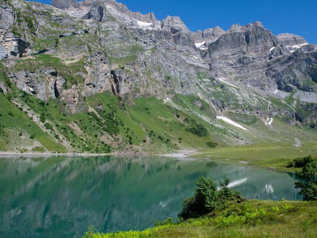 Ein idyllischer Bergsee, beste Aussichten und üppige Alpenflora: Lernen Sie die Region auf der Rundwanderung ab Braunwald kennen.