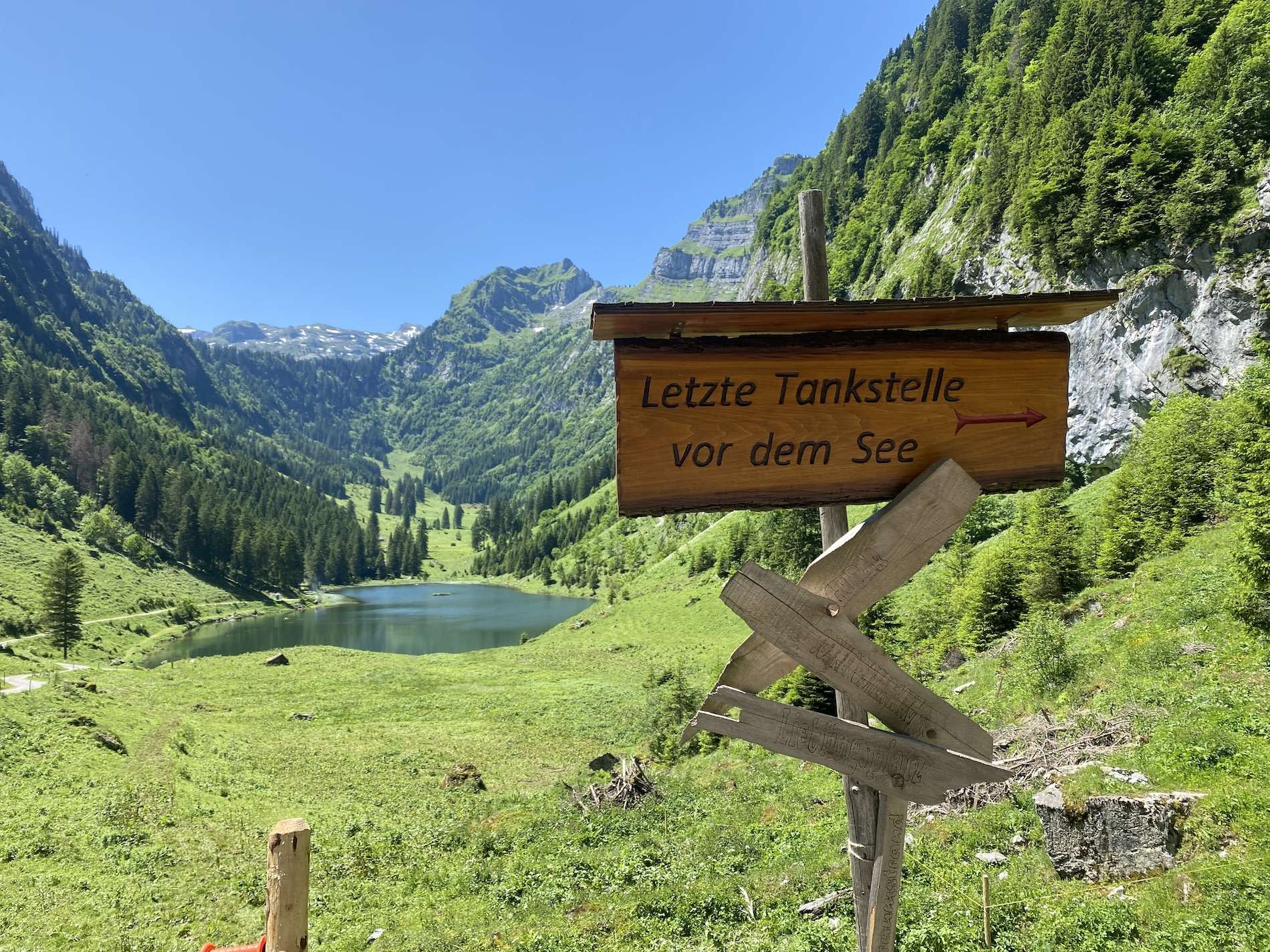 Einkehren und die wunderschöne Aussicht auf den Talalpsee geniessen.