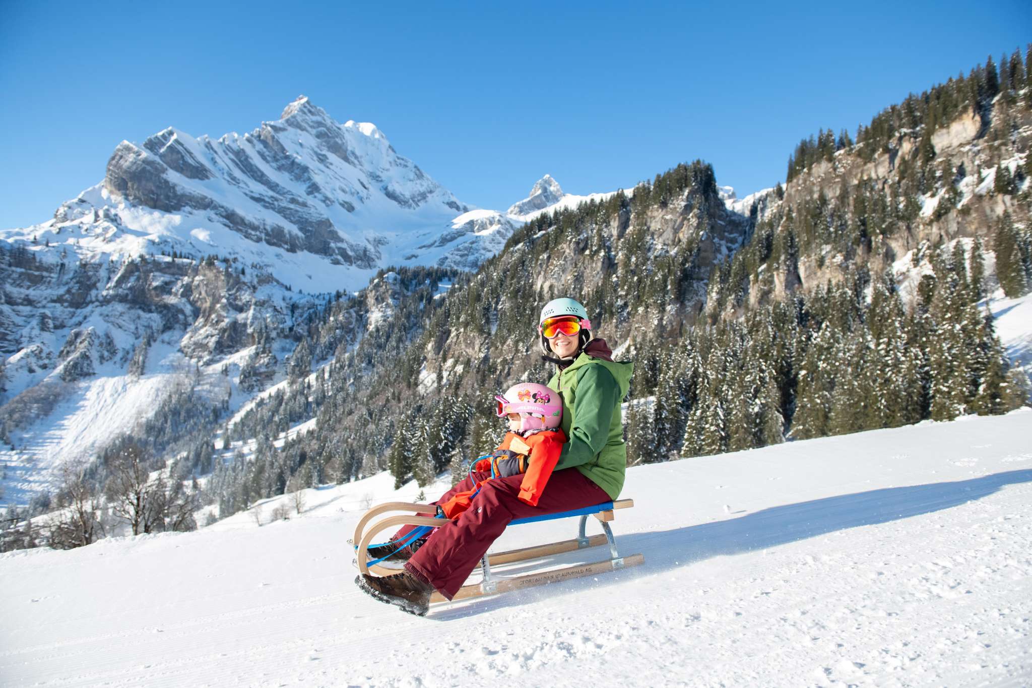 Die Piste ist ausschliesslich für Schlittler reserviert und verspricht viel Fun und Action, egal ob gemütlich mit der Familie, rasant zu zweit oder beim Gruppenausflug.