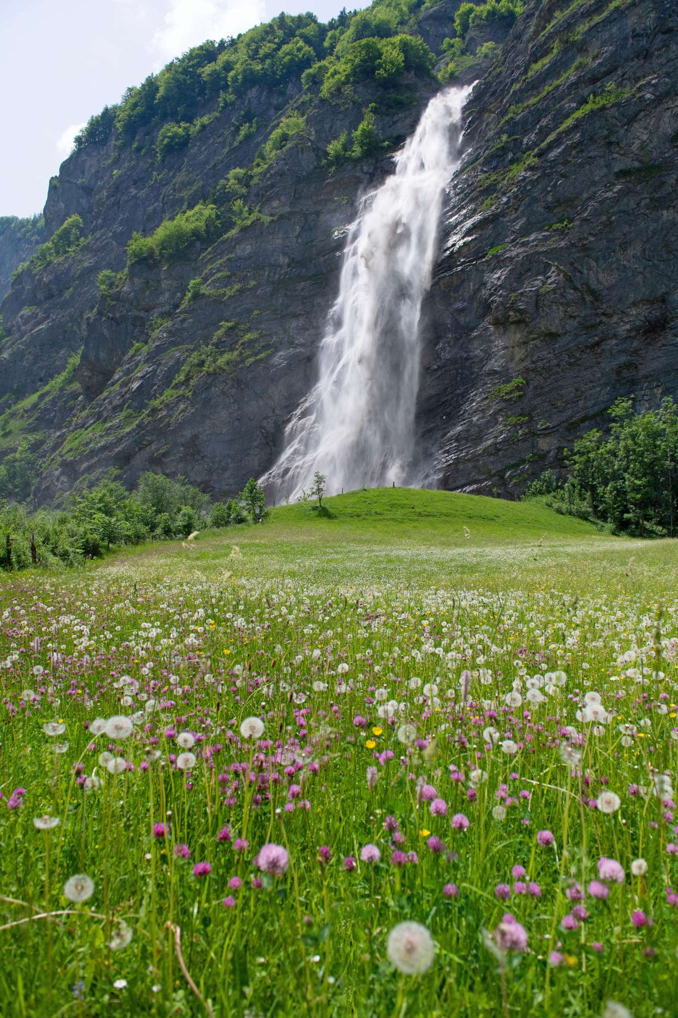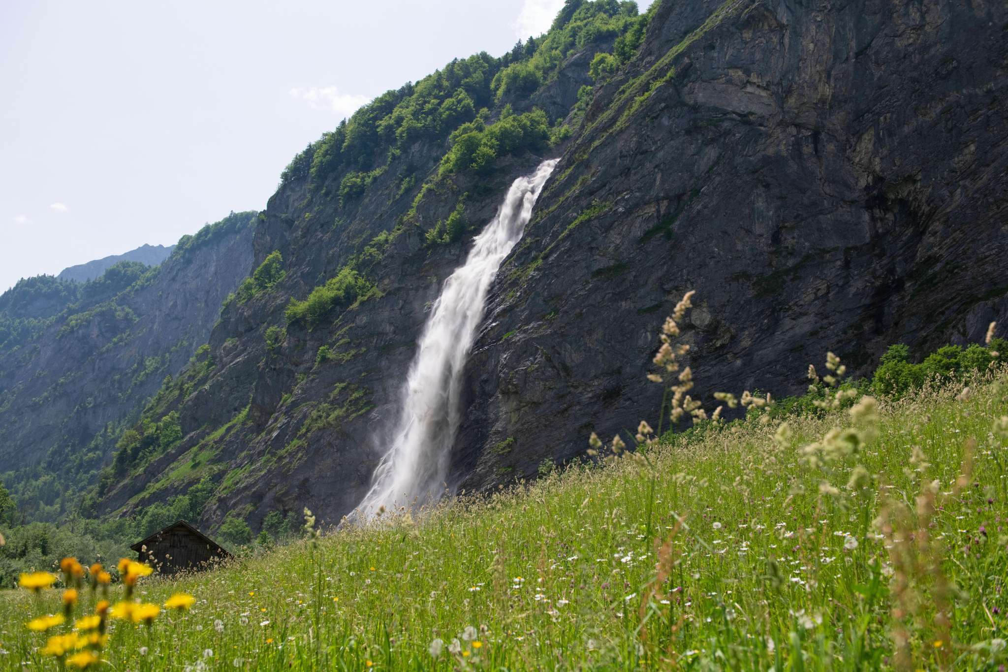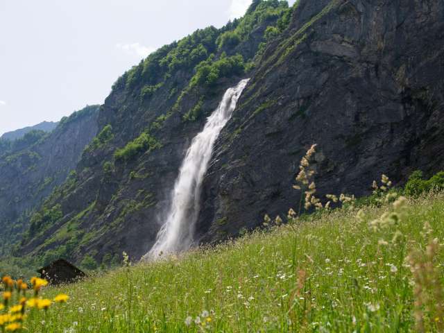 Der Wildwüestibachfall liegt etwas weiter hinten im Tal und läuft an den gleichen Tagen wie der Schreyenbachfall.