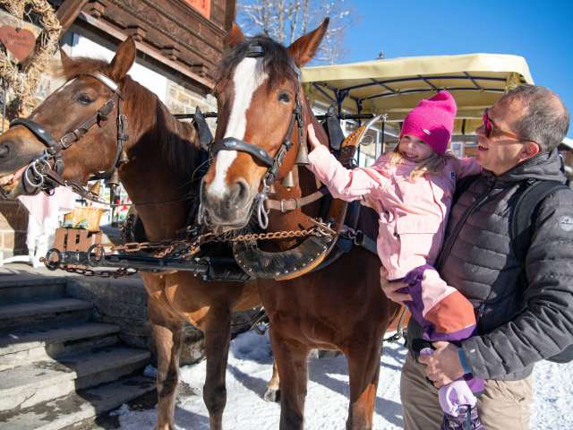 Kutschenfahrten: Eine gemütliche Pferdekutschenfahrt mit der Familie, mit lieben Freunden, mit Kollegen oder eine romantische Fahrt zu zweit, es ist immer ein besonderes Erlebnis. Wie wäre es mit einer Dorfrundfahrt oder einer Rundfahrt ins Nussbüel? Sommer wie Winter stehen unsere fünf Freiberger für gemütliche Fahrten bereit! Gerne berücksichtigen wir deine Wünsche: z.B. einen Apéro auf der Kutsche zu geniessen oder die Kutsche für einen besonderen Anlass zu schmücken...lass es uns wissen, wir legen uns gerne 'ins Geschirr'. Bei unsicherem oder nassem Wetter, haben unsere Kutschen ein Verdeck. Im Winter sorgen dicke Lammfelle für angenehme Wärme.