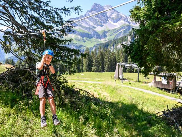 Bei zu wenig Schnee, ist der Seilpark im Winter offen. Die Saisonkarte Braunwald ist gültig.