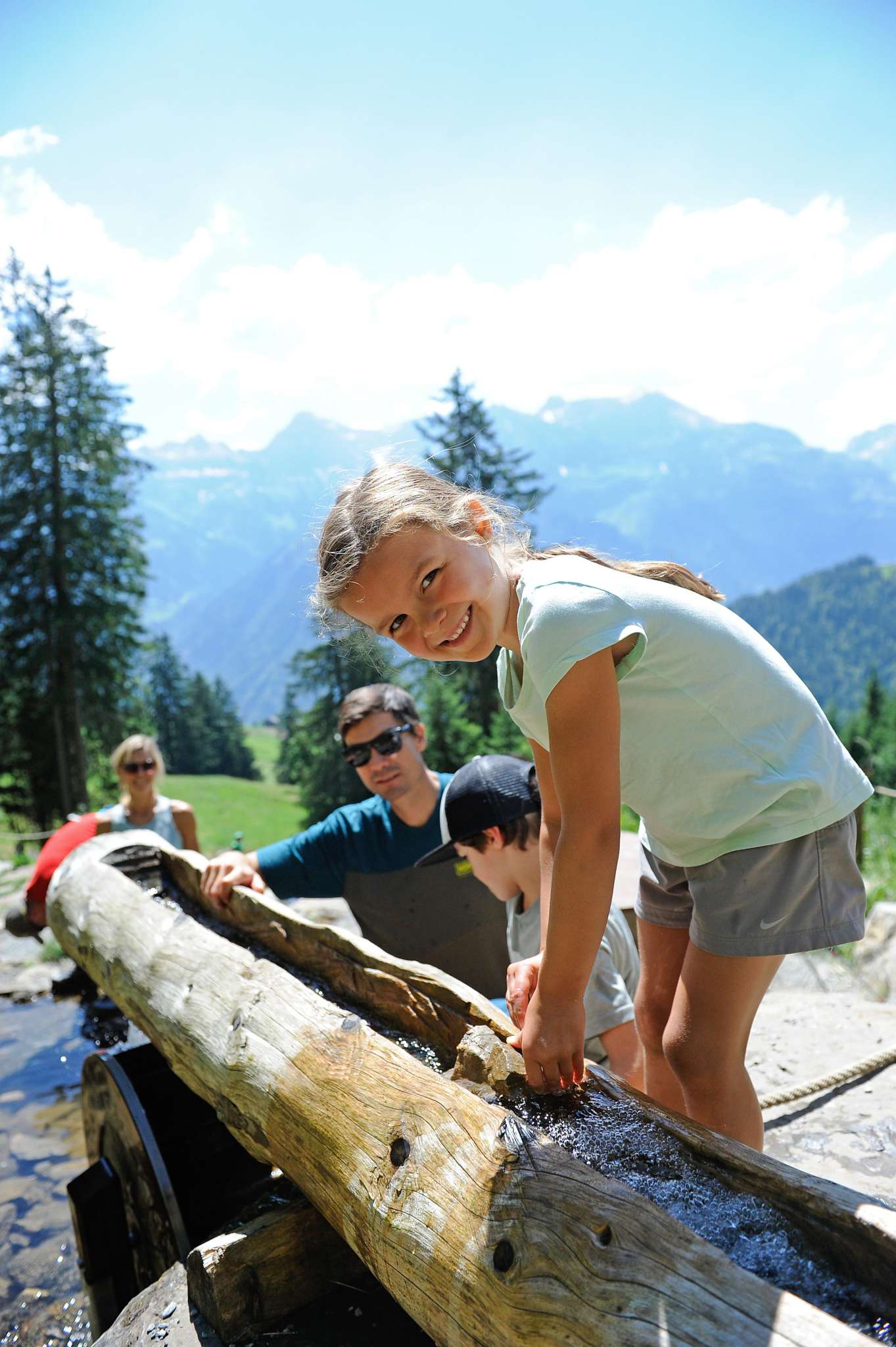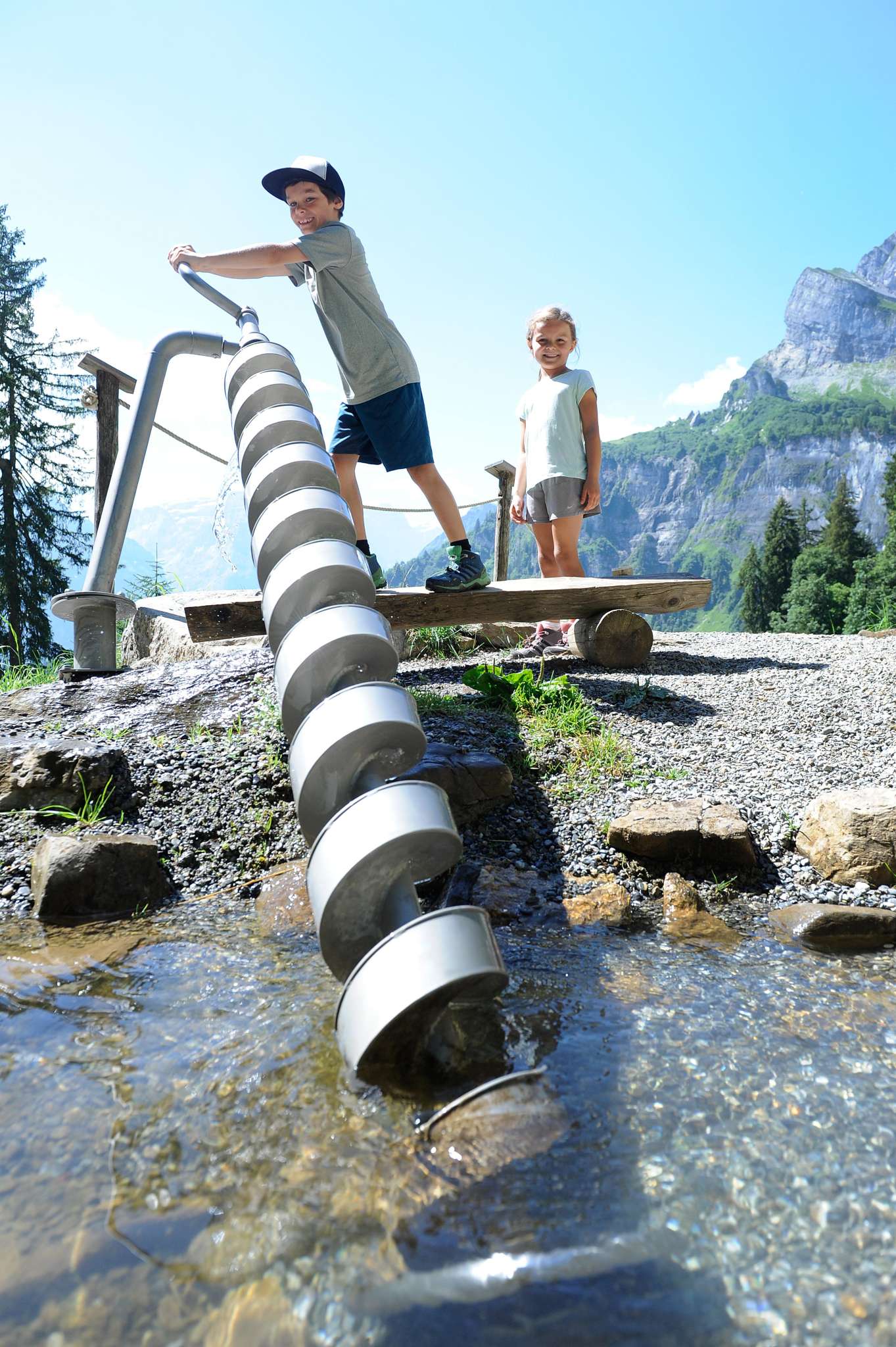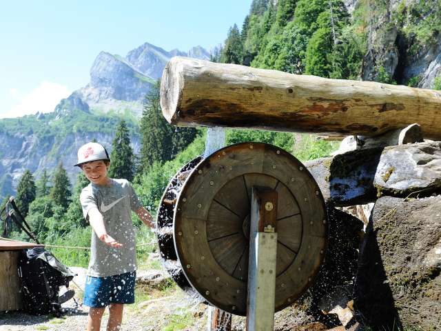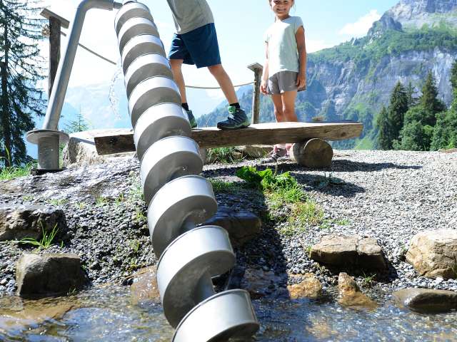 Der Wasserspielplatz befindet sich auf dem Zwerg-Bartli-Erlebnisweg und ist ein Vergnügen für Gross und Klein.
