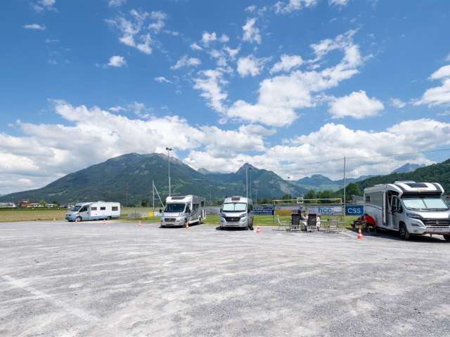 Der zentrale Caravan- und Wohnmobil-Stellplatz in Glarus Nord mit Restaurant- und Wellnessbereich nebenan.