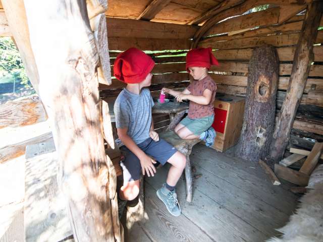 Die Stationen Rindenhüttli, Zwergenturm und Musiktruhe sind mit dem Kinderwagen erreichbar.
