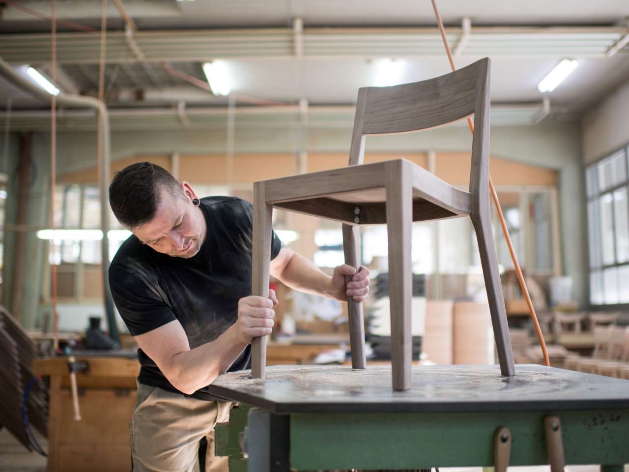 Bild 2: Bei der ag möbelfabrik horgenglarus, der ältesten Stuhl- und Tischmanufaktur der Schweiz. Copyright: Kanton Glarus / Samuel Trümpy
