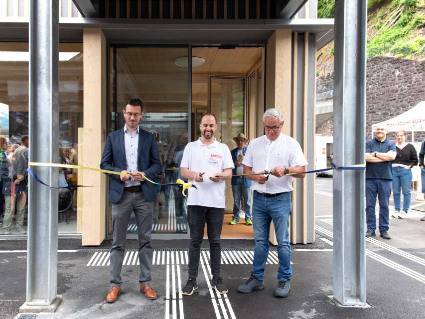 Schwanden, 23. Juni 2024 – Es ist vollbracht, die Tourismus-Drehscheibe am Bahnhof Schwanden ist eröffnet. Der neue Hingucker mit integrierter Gäste-Info, kleinem Café-Angebot, einem Shop mit Glarner Produkten, Büroräumlichkeiten für die Tourismusorganisation VISIT Glarnerland und Arbeitsplätzen im Co-Working-Gedanken sowie einem öffentlich nutzbaren Konferenzraum und Dachterrasse und einem Aufenthaltsraum für die Autobetriebe Sernftal wurde am vergangenen Samstag feierlich eingeweiht.