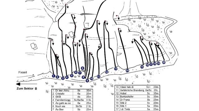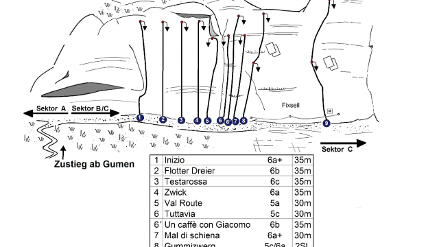 Seil, Klettermaterial und Helm müssen selber mitgenommen werden, da keine Vermietung vor Ort.